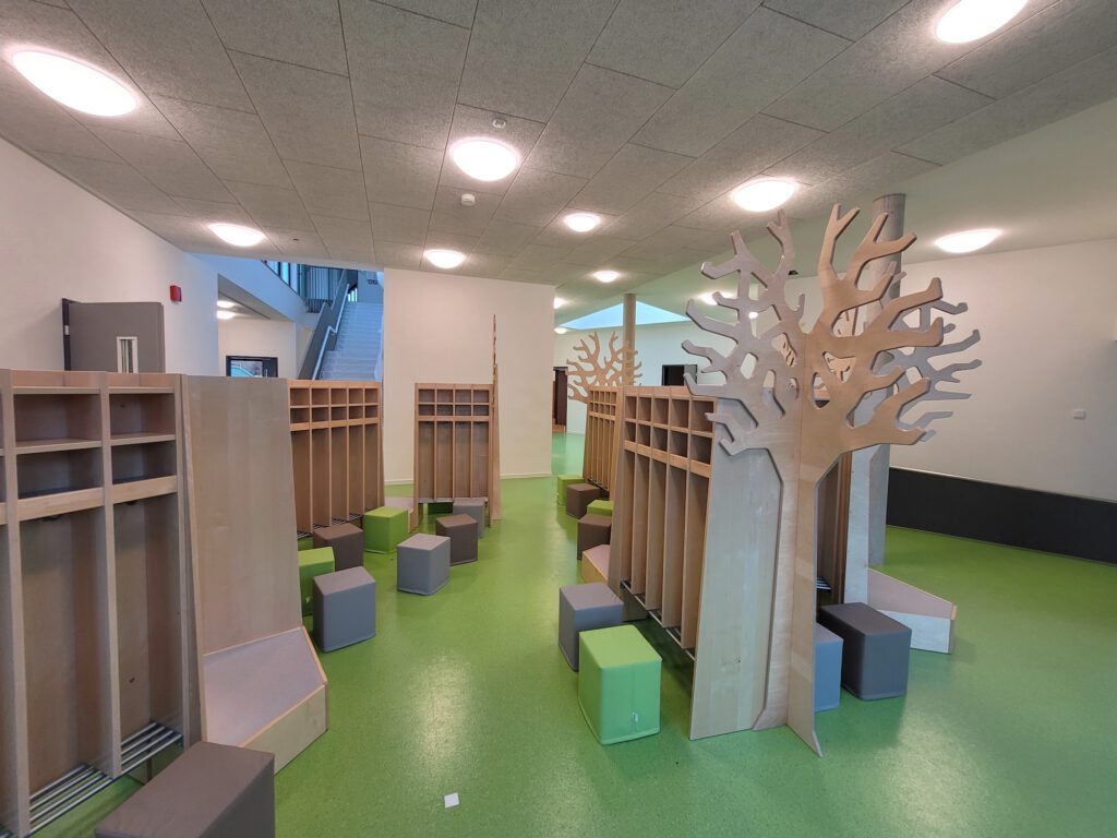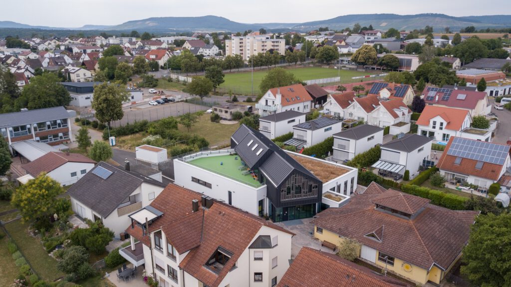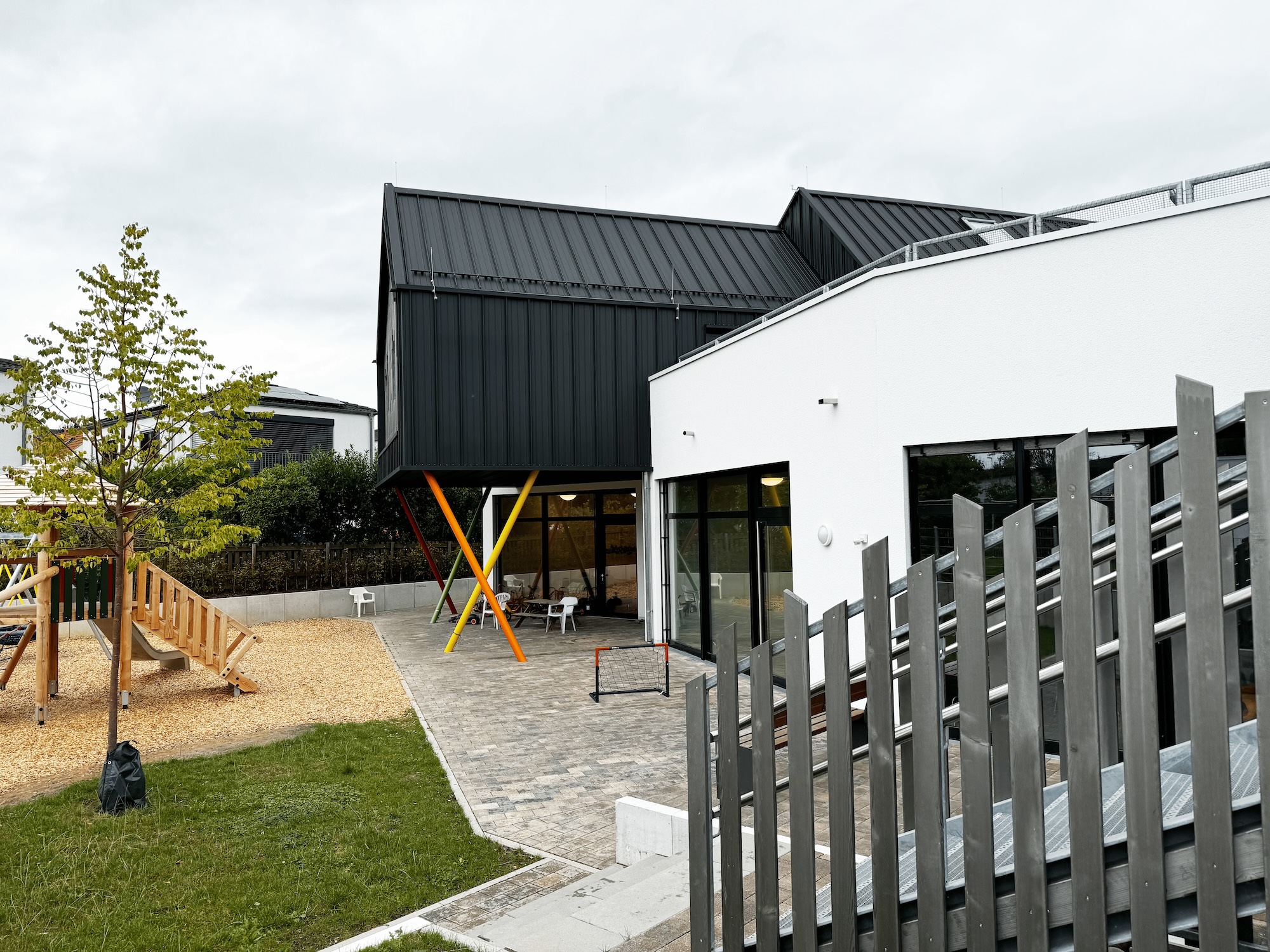 Im Auftrag der Stadt Sachsenheim wurde der Kindergarten „Villa Sonnenschein“ saniert und barrierefrei um einen Neubau erweitert. Die Nutzfläche verdreifachte sich dabei und bietet nun Raum für insgesamt vier Gruppen.